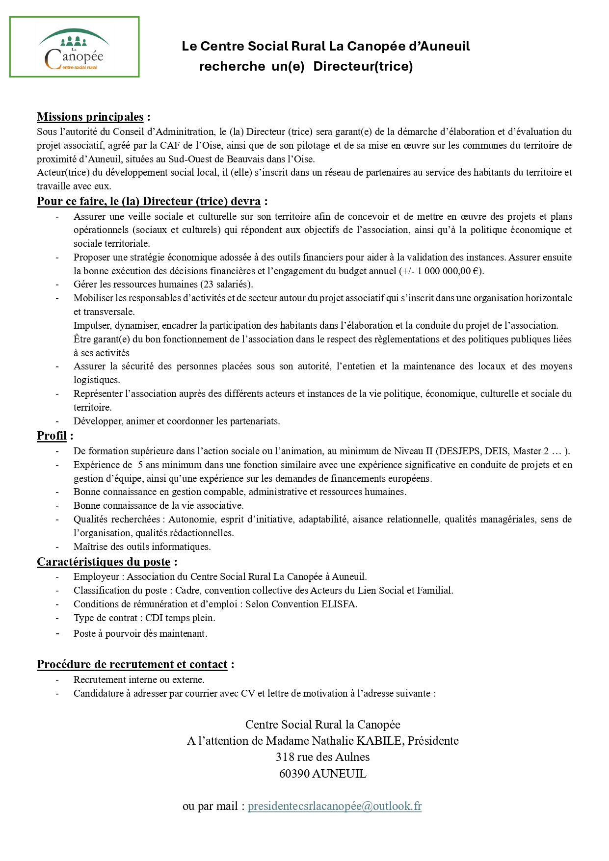 Pour plus d'infos contacter le 03.44.84.46.83.