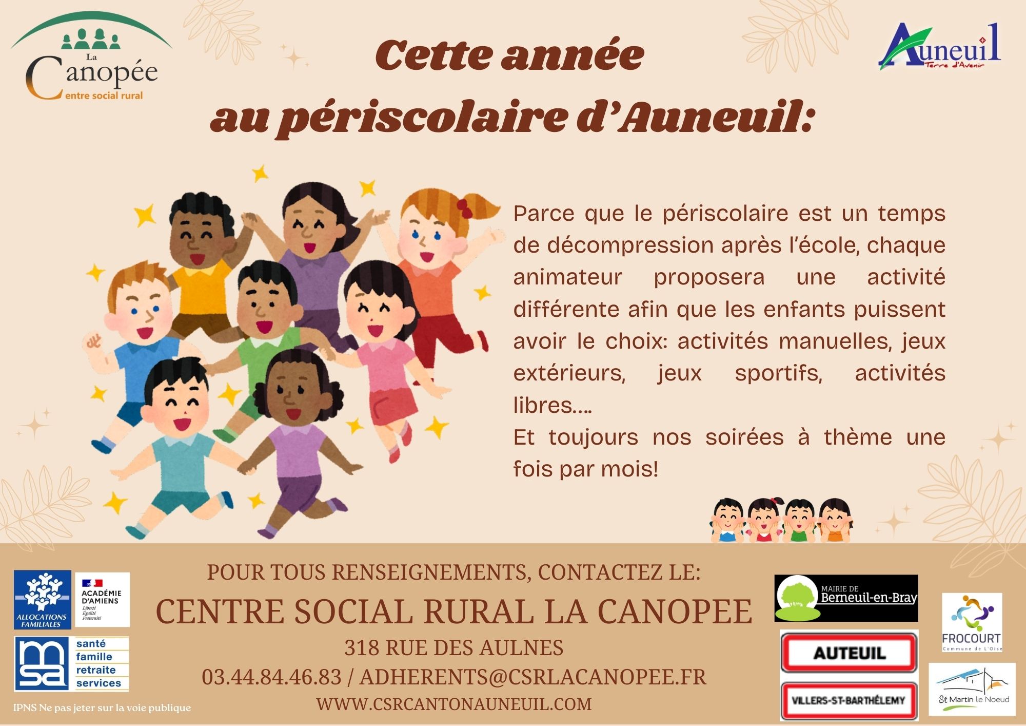 Les Accueil Collectif de Mineurs d'Auneuil vous propose plusieurs types d'accueil : le périscolaire, les mercredis et les vacances scolaires.